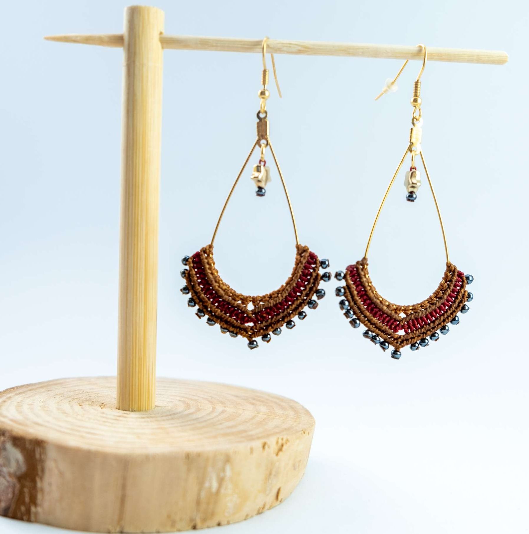 Machen Sie sich bereit für Komplimente. Diese superleichten Mikro Makramee Ohrringe werden mit Sicherheit jede Menge Aufmerksamkeit auf sich ziehen. Komplett in Handarbeit gefertigt mit hochwertigsten Materialien, nickelfreien Messingohrhaken und gewachster Polyesterschnur.