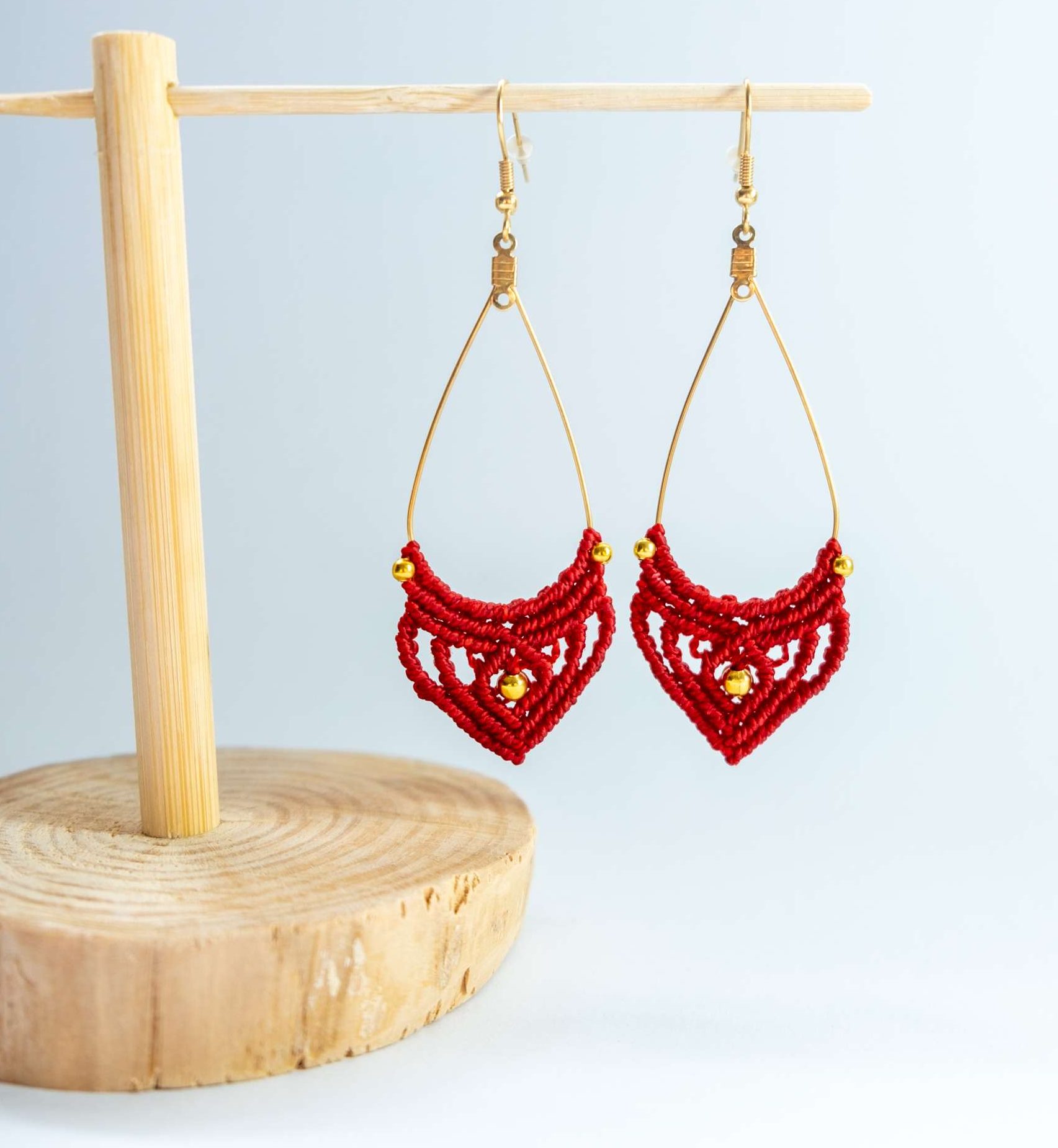 Ich verwende hochwertiges, wasserfestes und extrem strapazierfähiges Garn, das mit der Zeit seine Farbe oder Form nicht verliert. Wenn die Ohrringe schmutzig werden, waschen Sie sie mit Seife und warmem Wasser.