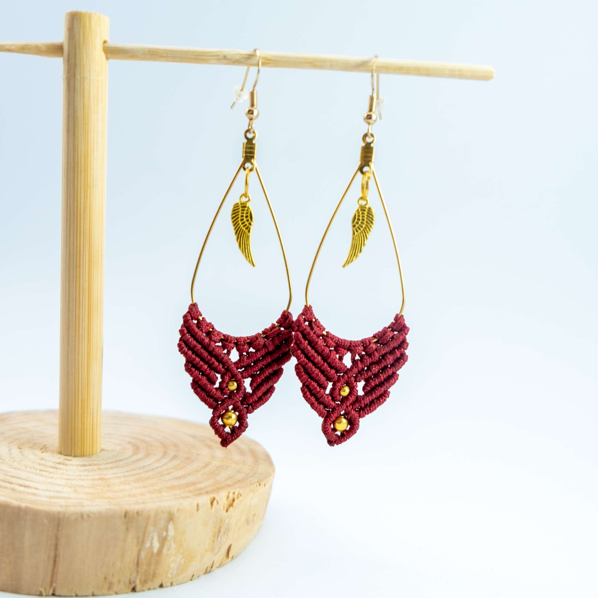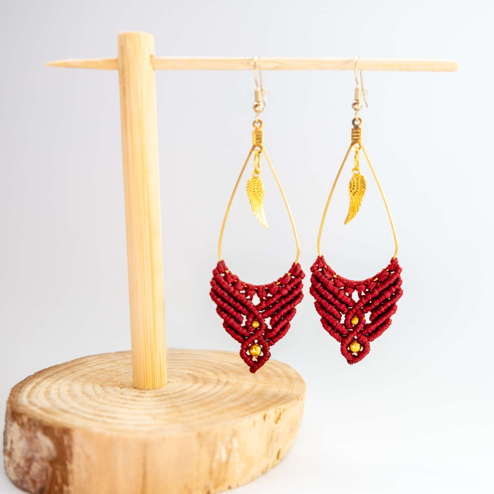 Ich verwende hochwertiges, wasserfestes und extrem strapazierfähiges Garn, das mit der Zeit seine Farbe oder Form nicht verliert. Wenn die Ohrringe schmutzig werden, waschen Sie sie mit Seife und warmem Wasser.